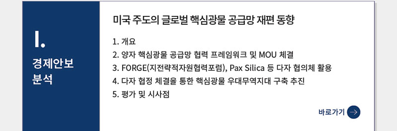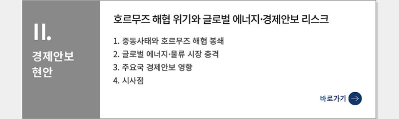 경제안보 Review 26-5호(미국 주도의 핵심광물 공급망, 호르무즈 해협 위기와 경제안보, EU 산업가속화법)